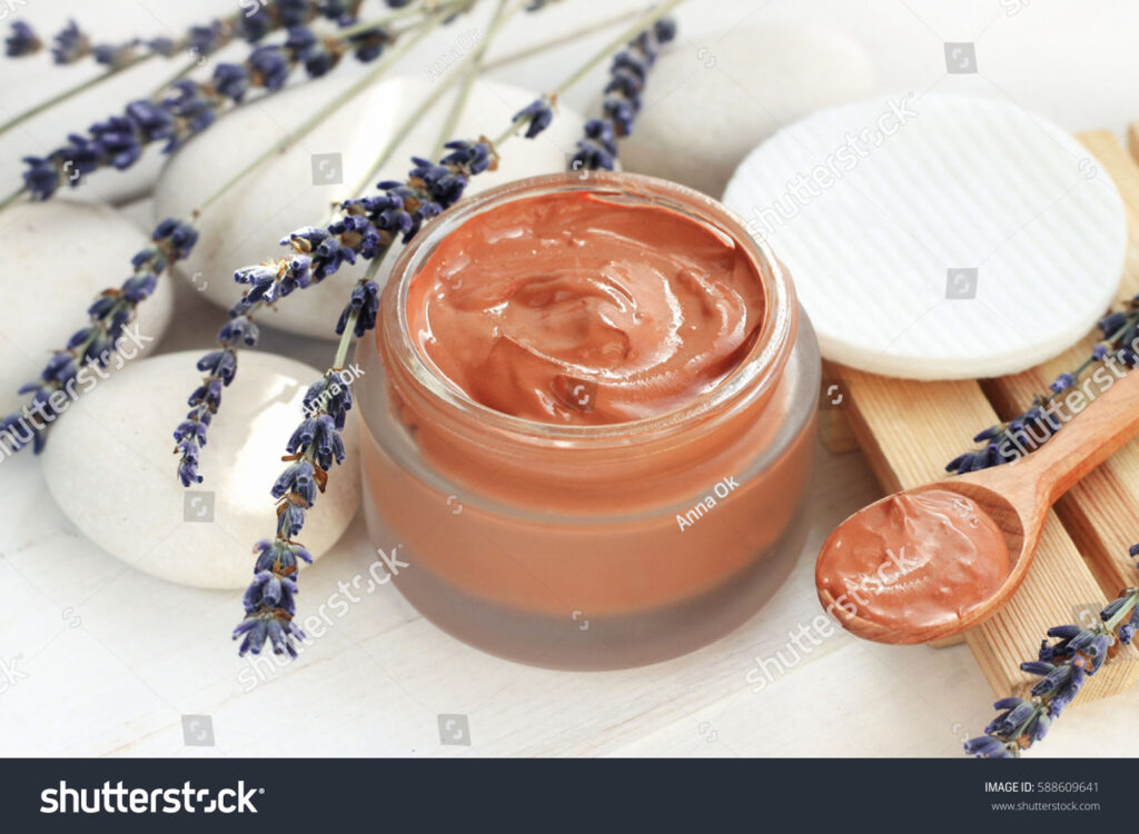 GHASSOUL stock-photo-cosmetic-red-clay-mask-mixed-in-jar-dried-lavender-flower-twigs-on-white-stones-588609641 / 0 / 0
